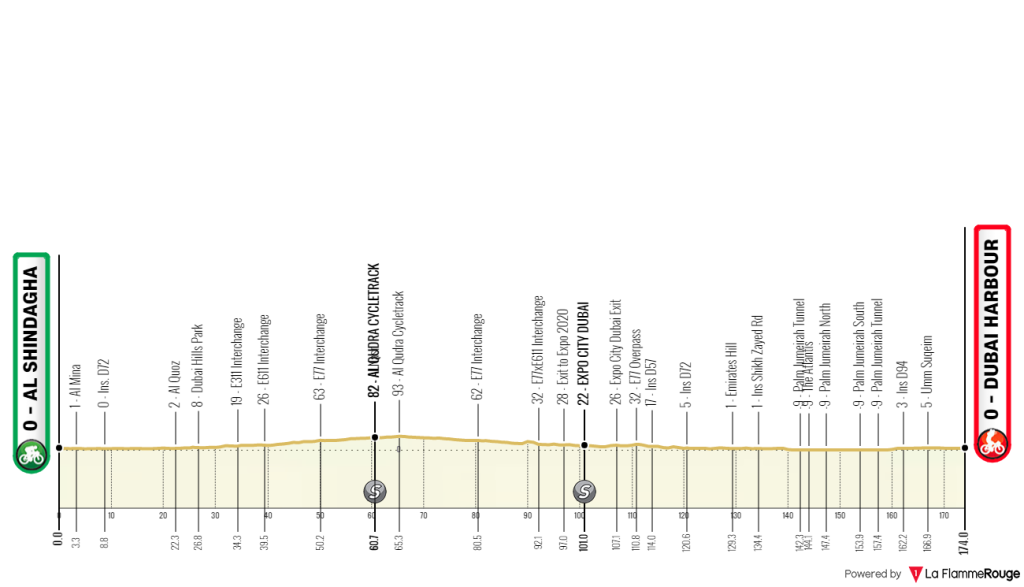 Chegadas ao Dubai signficam chegadas ao sprint. Apenas no ano passado um quinteto com três ciclistas da extinta Gazprom – RusVelo conseguiu fugir do pelotão e disputar a vitória na etapa. Todas as restantes chegadas ao Dubai foram disputadas ao sprint, com vitórias para alguns dos sprinters presentes como Sam Bennett, Elia Viviani, Caleb Ewan e Mark Cavendish.