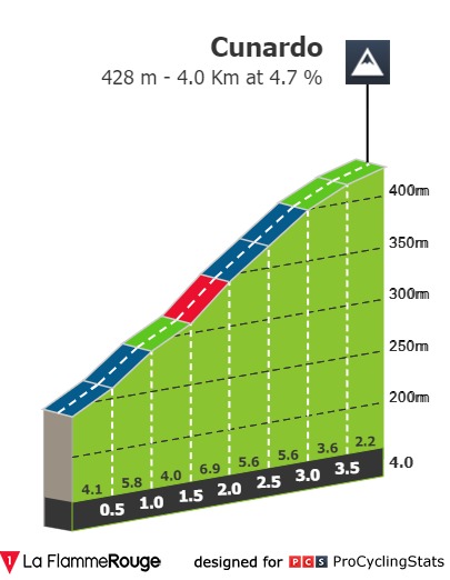 Após a descida de cerca de 5km, o pelotão terá 3km planos até cruzar a linha de meta, e se aqui tivermos o habitual jogo do gato e do rato, a situação poderá ficar propícia a que alguém tome por inspiração Jasper Stuyven (Trek – Segafredo) na Milano Sanremo de ontem, e ganhe vantagem suficiente para vencer de forma isolada a corrida.