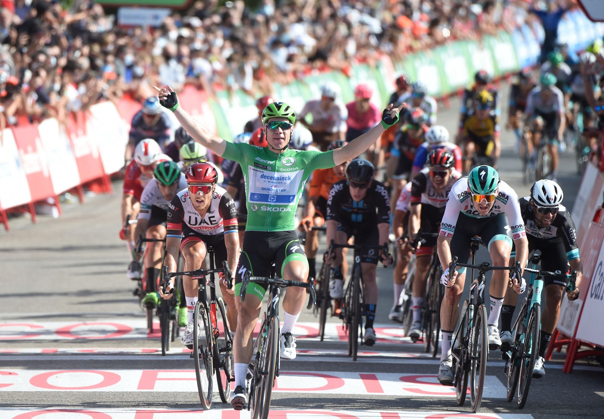 O aniversariante do dia, Fabio Jakobsen (Deceuninck – Quick Step) venceu a 16ª etapa da La Vuelta a España, uma ligação de 180km entre Laredo e Santa Cruz de Bezana, batendo ao sprint o belga Jordi Meeus (Bora – Hansgrohe) e o italiano Matteo Trentin (UAE Team Emirates), num final bastante complicado tecnicamente.