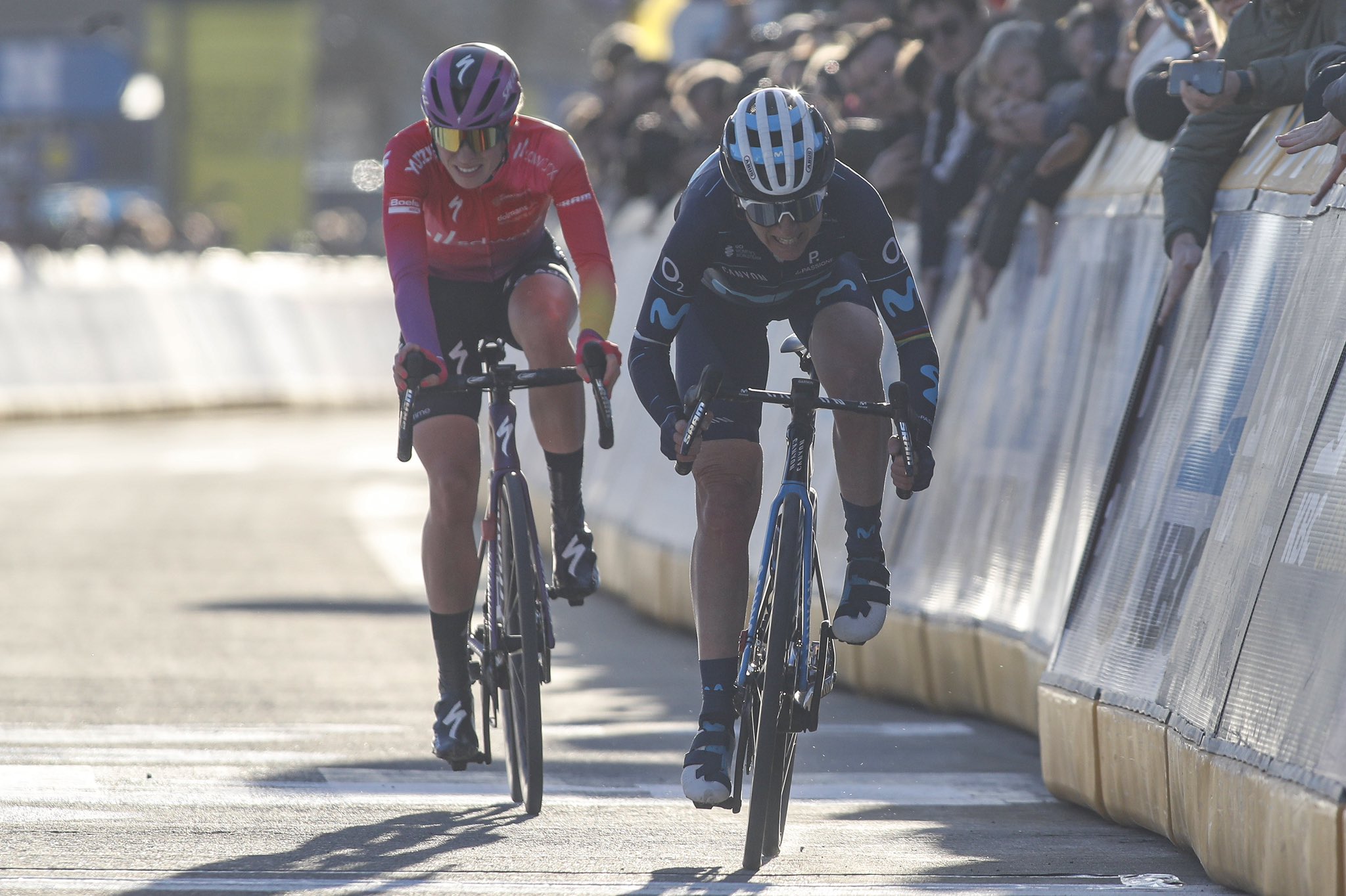 Annemiek van Vleuten bate Demi Vollering ao sprint para vencer a Omloop Het Nieuwsblad!