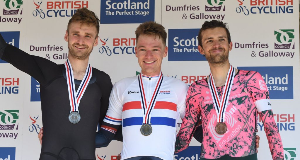 Pódio do CRI Britânico com Daniel Bigham – Ethan Hayter – James Shaw (da esquerda para a direita)