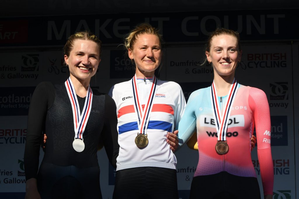 Pódio do CRI Britânico com Leah Dixon – Joscelin Lowden – Elizabeth Holden (da esquerda para a direita)