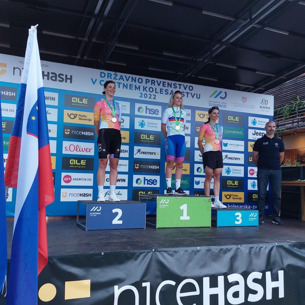 Pódio do CRI Esloveno com Eugenia Bujak – Urska Zigart – Ursa Pintar (da esquerda para a direita)