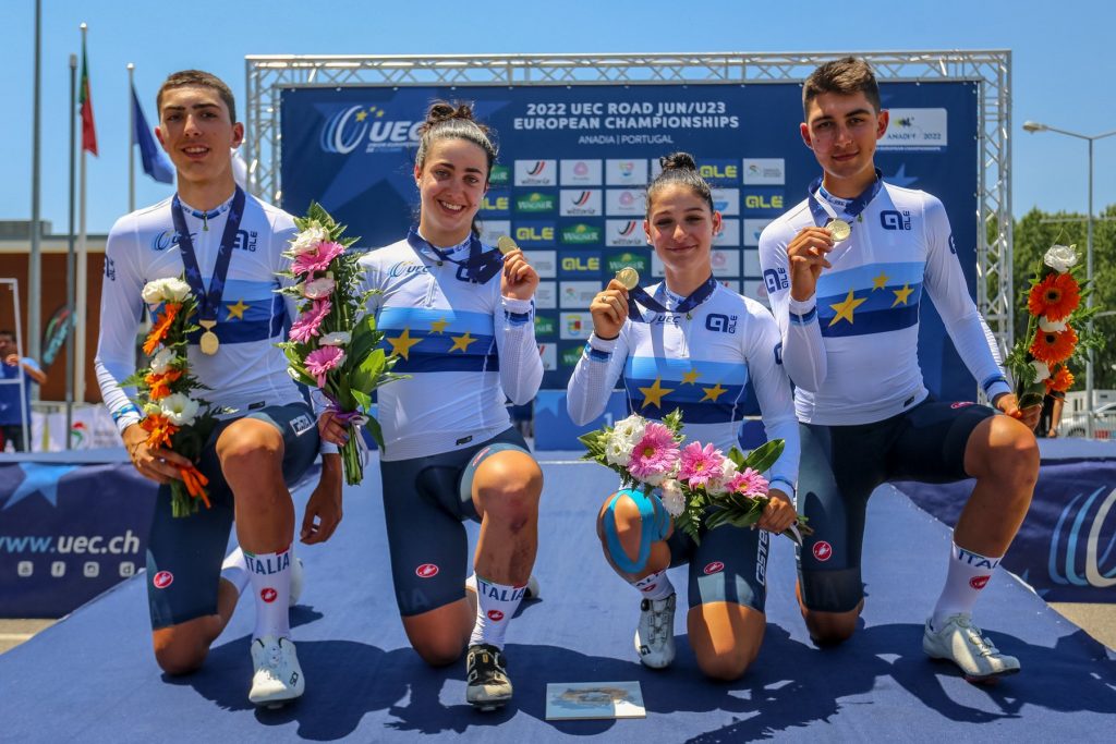 Decorreram na manhã de hoje as provas de estafetas mistas dos Europeus de Anadia para Juniores e Sub23, com as seleções Italiana e Alemã a levarem a melhor e a conquistarem mais um Ouro! As estafetas contam com dois ciclistas de cada género, masculino e feminino, que fizeram 22km em modo contrarrelógio. Primeiro saíram os rapazes para os seus 22km e quando cruzavam a meta saíam as raparigas para os 22km finais.
