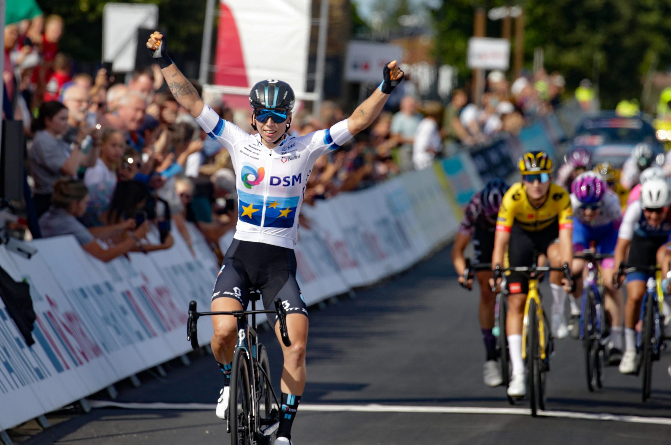A 79km do fim, uma queda aconteceu no pelotão mas a campeã da Europa conseguiu reentrar no pelotão. 20km depois, um corte aconteceu no pelotão e um grupo composto por Chantal Van den Broek-Blaak e Lonneke Uneken (Team SD Worx), Elynor Backtedt, Audrey Cordon-Ragot, Chloe Hosking e Lauretta Hanson (Trek – Segafredo), Eugénie Duval (FDJ-Suez-Futuroscope), Wiebes, Franziska Koch e Charlotte Kool (Team DSM), Soraya Paladin (Canyon // SRAM Racing), Eleonora Gasparrini (Valcar – Travel & Service), Ruby Roseman-Gannon (Team BikeExchange – Jayco), Anna Henderson, Romy Kasper e Karlijn Swinkels (Jumbo – Visma), Mischa Bredewold (Parkhotel Valkenburg) e Jackson, Eva Buurman, Jeanne Korevaar e Silke Smulders (Liv Racing XSTRA) a ficarem isoladas na frente da corrida.