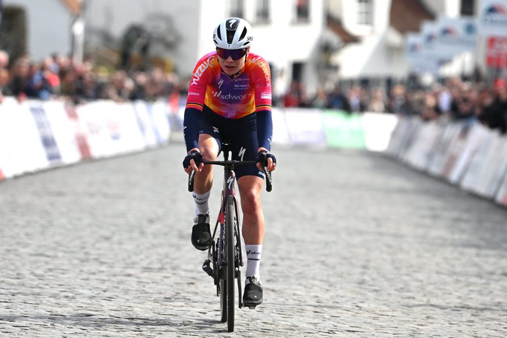 A 23km da meta, Aude Biannic (Team SD Worx) saltou do pelotão e ficou isolada na frente da corrida. 11km depois, Kopecky atacou e a belga foi seguida por Gasparrini. As duas conseguiram juntar-se a Biannic na frente da corrida. Poucos kms depois, Henderson saiu do pelotão e tentava fazer a ponte para a frente da corrida. A 7.7km da meta, Elisa Balsamo e Christina Schweinberger (Fenix-Deceuninck) saíram do pelotão e juntaram-se a Henderson. Poucos metros depois, Balsamo sofreu uma queda e a italiana foi ultrapassada pelo pelotão. Henderson e Schweinberger foram alcançadas pelo pelotão.