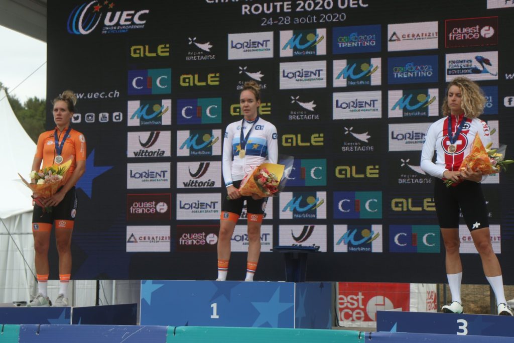A holandesa Anna van der Breggen é a nova campeã europeia de contrarrelógio em elites, após cumprir o traçado de 25.6km em Plouay em 34:03, para alcançar assim o seu primeiro título europeu na especialidade. No segundo lugar terminou a ex-campeã europeia, a holandesa Ellen van Dijk a 31 segundos, e em terceiro a suiça Marlen Reusser a 59s.