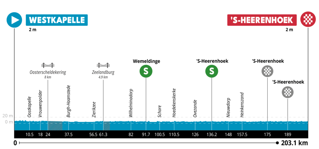Hoje realizou-se a primeira etapa em linha do ZLM Tour, onde o favoritismo passava para os homens rápidos, sendo Olav Kooij (Team Jumbo – Visma) o homem para quem iriam estar mais voltadas as atenções. A etapa ligou Westkapelle a ‘S-Heerenhoek, num percurso com 203.1km totalmente plano, que registava apenas dois sprints intermédios. Nos últimos kms, os atletas iriam passar duas vezes pela meta, percorrendo um circuito local de 14km.