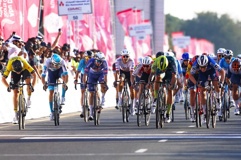 O neerlandês Olav Kooij (Team Visma | Lease a Bike) venceu a quinta etapa do UAE Tour, uma ligação de 182.7km entre Al Aqah e Umm Al Quwain, batendo ao sprint o belga Tim Merlier (Soudal Quick-Step) e o australiano Sam Welsford (Bora – Hansgrohe).
