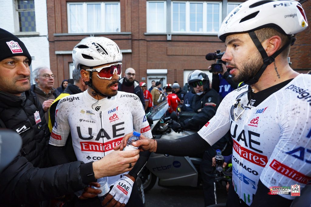 António Morgado com Alvaro Hodeg no final do GP Le Samyn