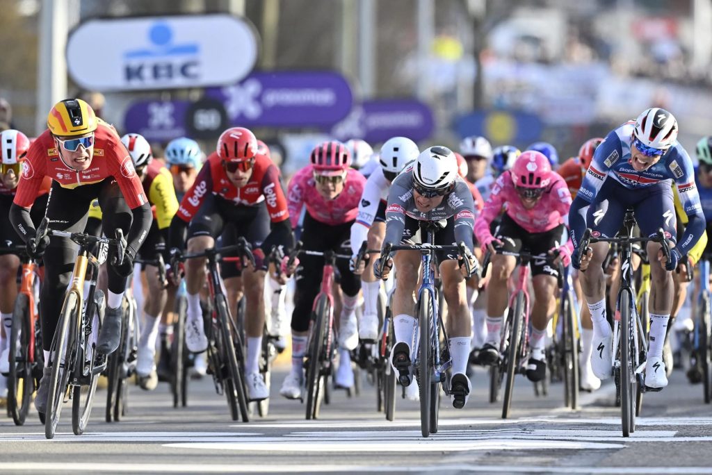A 17km do fim, Tratnik sofreu um furo e perdeu assim as suas chances de lutar pela corrida. Poucos metros depois, no Muur – Kapelmuur, Mathias Vacek (Lidl – Trek) acelerou e foi seguido por Tim Wellens e Narvaez (UAE Team Emirates – XRG), Van Aert e Matteo Jorgenson (Team Visma | Lease a Bike), Matteo Trentin e Rick Pluimers (Tudor Pro Cycling Team), Sam Watson (Ineos Grenadiers), Tim Van Dijke, Jasper Philipsen, Stefan Kung, Laurenz Rex (Intermarché – Wanty) e Stefan Bisseger (Decathlon AG2R La Mondiale).