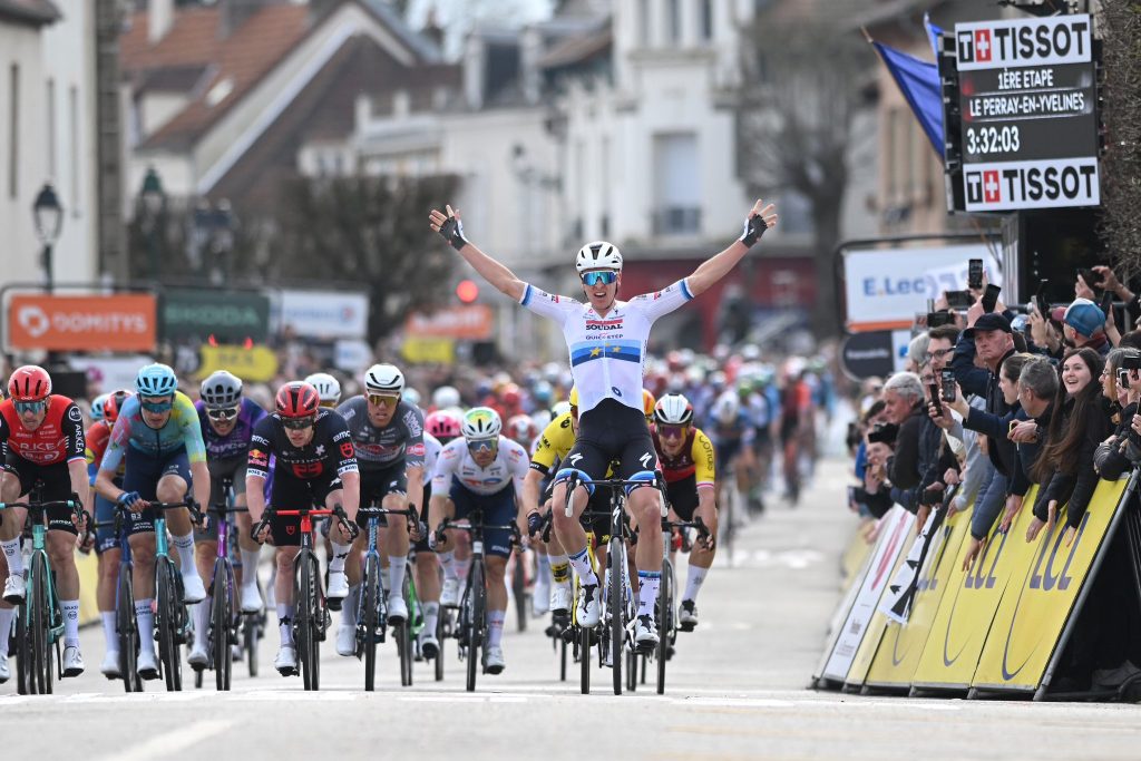 O belga, Campeão da Europa, Tim Merlier (Soudal Quick-Step) venceu a primeira etapa do Paris-Nice, de 156.1km com partida e chegada em Le Perray-en-Yvelines, batendo ao sprint o francês Arnaud Demare (Arkea-B&B Hotels) e o italiano Alberto Dainese (Tudor Pro Cycling Team). Merlier somou a sua quinta vitória da temporada e é assim o primeiro camisola amarela.
